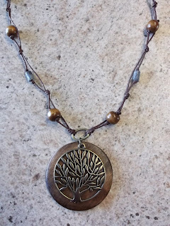 This Brass and Wood tree is the perfect necklace for a casual day ... with wood and bone beads .