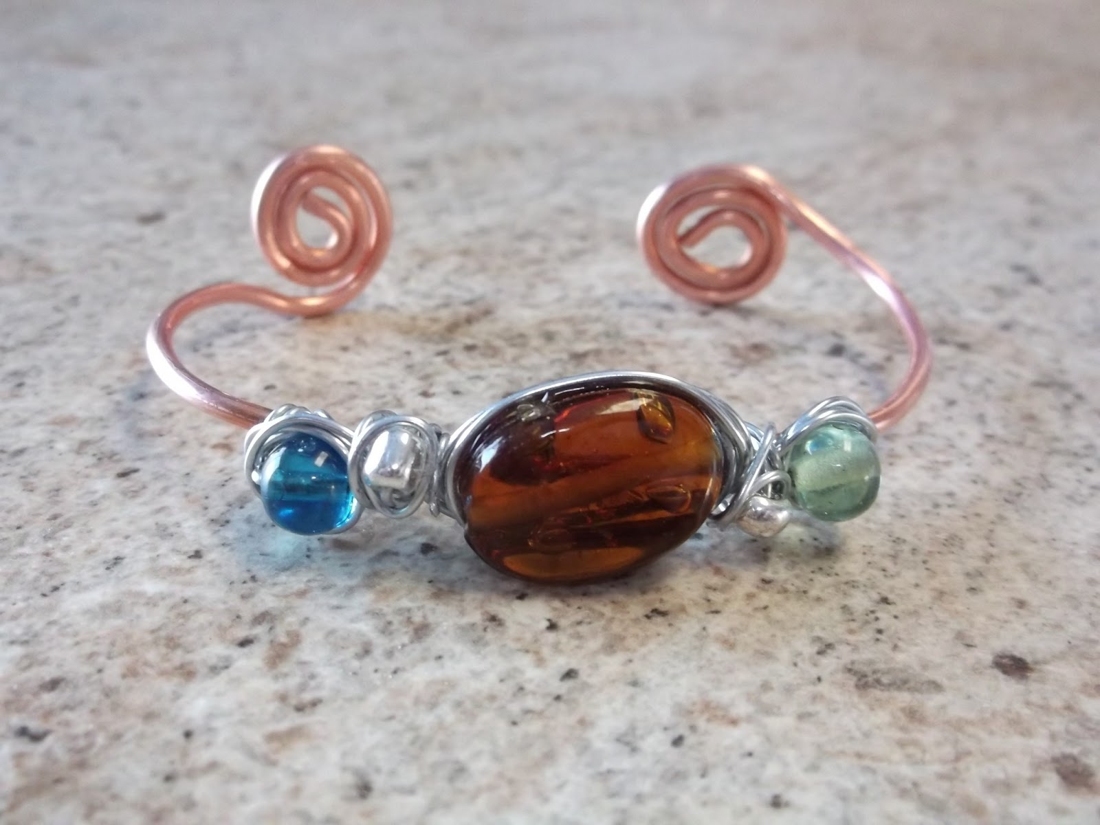 Copper bracelet with glass beads ... simple , beautiful and comfortable .