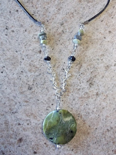 Serpentine Pendant with vine spacers and serpentine chips , this necklace is down to earth .